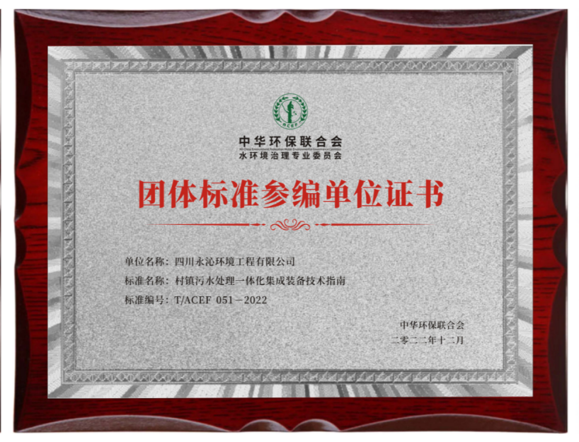 2022年12月29日,中华环保联合会批准发布《村镇污水处理一体化集成装备技术指南》(T/ACEF 051-2022)团体标准,该标准由2021年7月经历18个月编制完成,主编单位包括清华大学、重庆市科学技术研究院、清华大学、浙江工业大学、生态环境部土壤与农业农村生态环境监管技术中心。