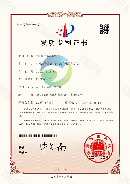 近日,公司研发申报的《污泥脱水消毒装置》专利证书获得国家发明专利授权。我司高度重视技术研发与储备,将理论和实践充分结合,更好的服务于医疗细分领域客户。目前已获得9项发明专利授权,22项实用专利授权,合计70+项自主知识产权。