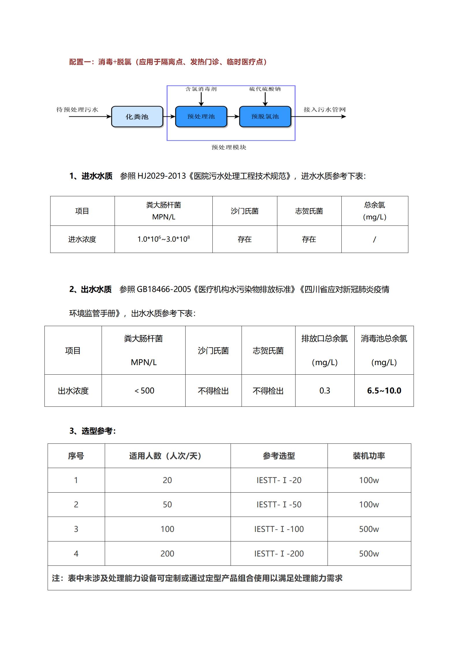配置二:预消毒+预脱氯+IESTT生化处理单元+消毒+脱氯(应用于方舱医院、中、大型医疗机构)