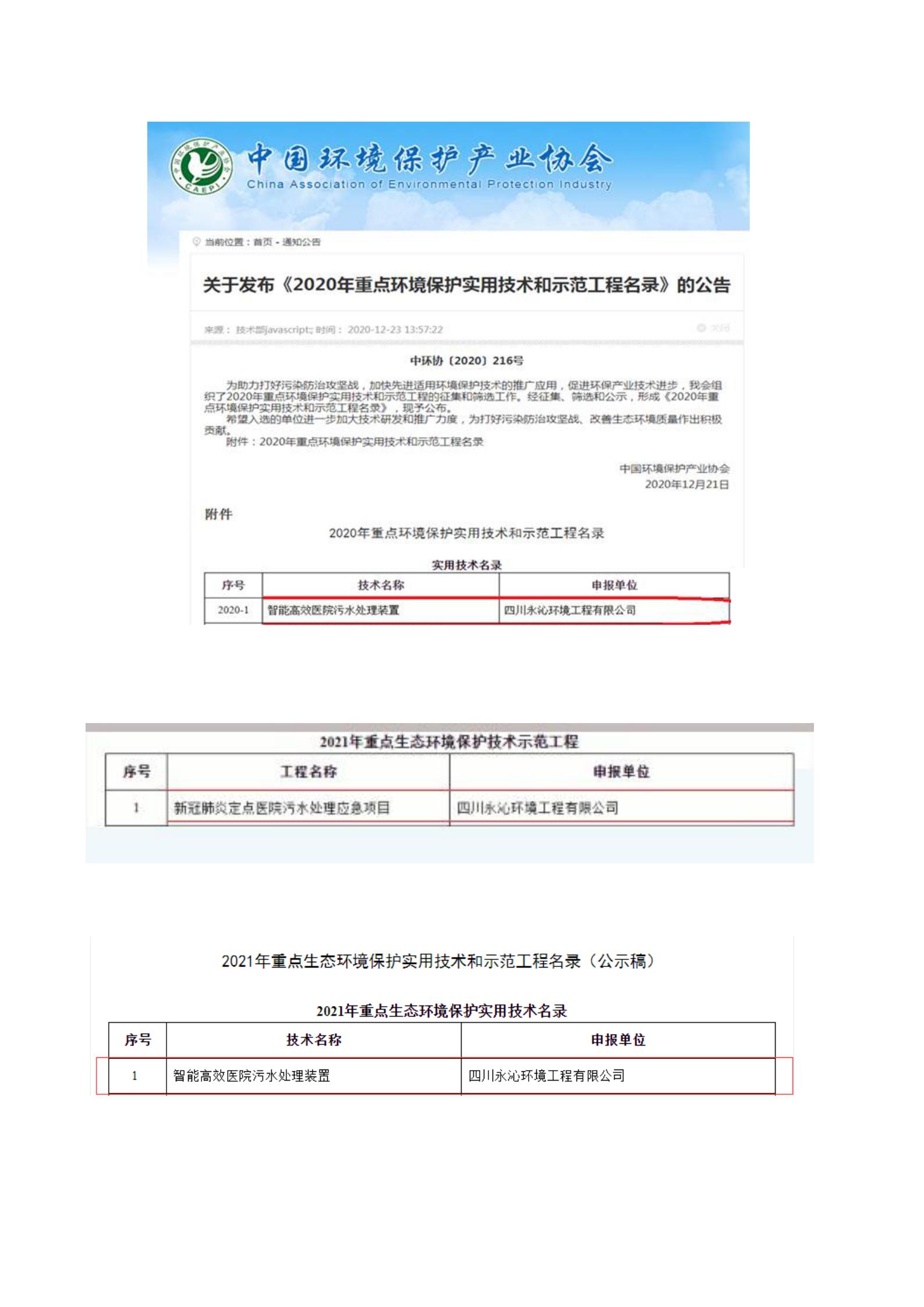 将重点环境保护实用技术装备应用于方舱医院、隔离点、发热门诊等各类医疗机构,确保出水水质达到相应的排放标准,避免新冠病毒通过污水传播。我公司设计、施工的“新冠肺炎定点医院污水处理应急项目”获得入选“2021年度重点生态环境保护技术示范工程”,公司自主研发的“智能高效医院污水处理装置”入选“2021年重点生态环境保护实用技术名录”及“2020年重点环境保护实用技术和示范工程名录”。