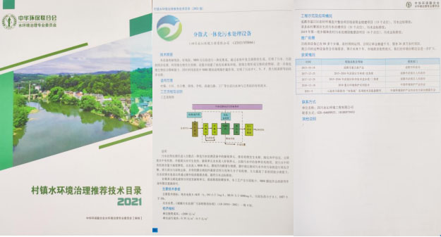 2021年7月4日-5日,我司提供的低碳先进技术“分散式一体化污水处理设备”成功入选中华环保联合会水环境治理专业委员会编撰出版《村镇水环境治理推荐技术目录》。该项技术实现了污水、污泥的同步处理。该项技术的成功入选,将为我国的生产减少水资源的消耗、实现水资源的可持续利用供有力的技术支撑。