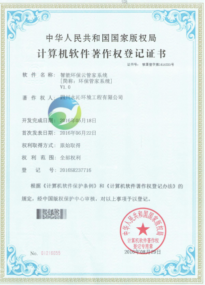 公司喜获环保管家系统软件著作权
