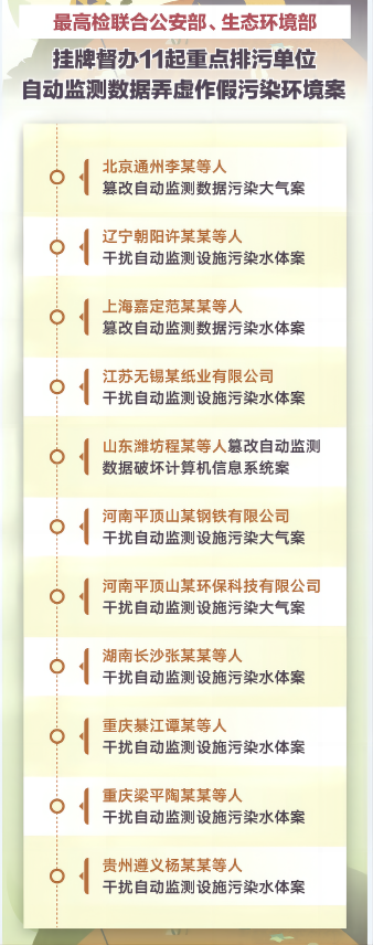 公安部 最高人民检察院 生态环境部联合挂牌督办11起重点排污单位自动监测数据弄虚作假污染环境案