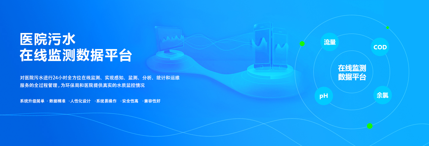 针对医院污水应用场景研发出“医院污水在线监测数据平台”,确保管理人员和操作人员实时掌握水质数据。保障医院污水出水达标,特别是疫情常态化的情形下,既能防止医院污水中的病菌进入市政管网,又能远程监测,杜绝人员接触病菌。目前已有数十家三甲医院部署使用,效果良好。